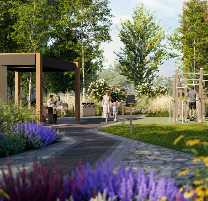Дополните образ жизни современного жителя города безмятежным отдыхом на природы в прекрасном парке, расположенном в нескольких шагах от вашего нового дома. Заряжайтесь энергией, отдыхая на свежем воздухе в окружении парка.